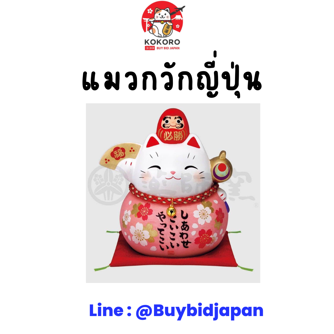 [PRE-ORDER] แมวกวักญี่ปุ่น แมวสีขาว ตัวสีชมพู ลายซากุระ Size 14.5 cm แมวกวักนำโชค Lucky Cat ManekiNeko Beckoning Cat นำเข้าจากญี่ปุ่น